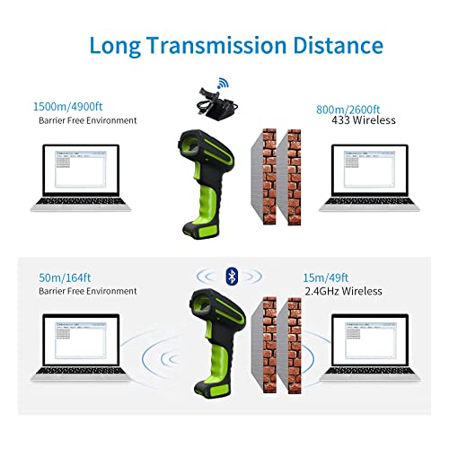 Wireless barcode scanner Adopt advanced radio frequency wireless technology, singal penetrates walls, ceilings and floors more effectively. Delivers up to The transmission distance can be 1000m /400m ,allowing workers to scan faster and farther , heavy duty indus trial grade barcode scanner is built to withstand harsh working environment and ensure superior durability , complete dust proof and to withstand impact from drops of up to 9.84ft to concrete floor.