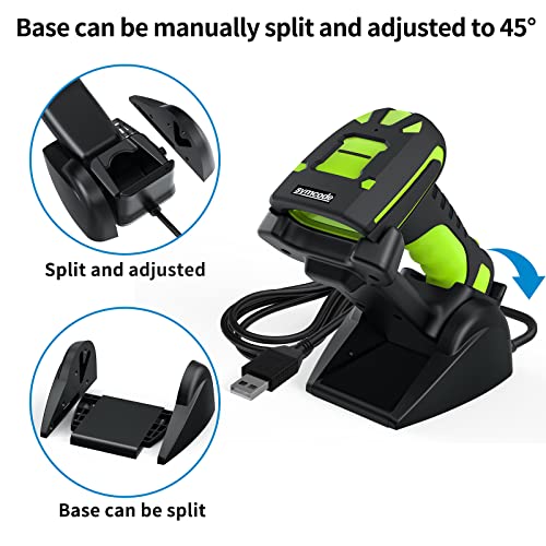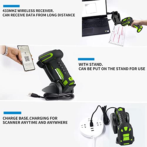 Barcode scanner Cradle houses 433 wireless receiver(the receiver is installed in the cradle, undetachable). Once connected to computer via USB cable, unit is ready for work. Work as you charge. Whenever scanner sits in cradle, charging automatically starts. Cradle doubles as scanner stand for hands-free operation.