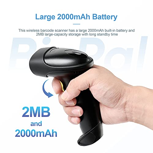 [Large 2000mAh Battery and Large-capacity Storage] This wireless barcode scanner has a large 2000mAh built-in battery and 2MB large-capacity storage with long standby time.
