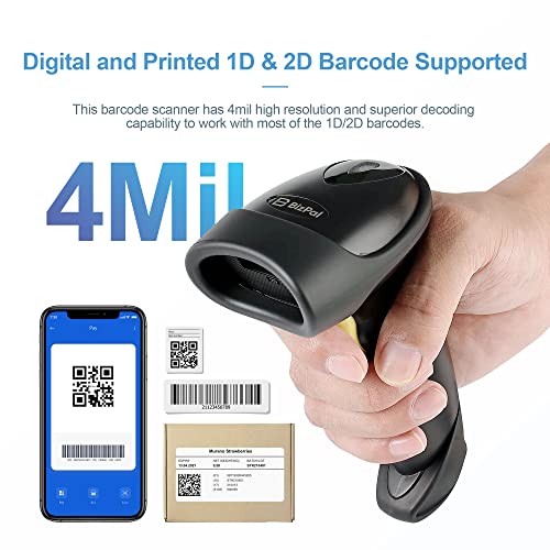 [Digital and Printed 1D & 2D Barcode Supported] This barcode scanner has 4mil high resolution and superior decoding capability to work with most of the 1D/2D barcodes. – 1D barcodes: Code25-Interleaved, Code25-Standard, Code32, Code25-Matrix, Code39-Regular, Code128, Code39-FullASCII, Code93-Regular, Codabar, Code93-FullASCII, EAN/JAN-13, UPC-A, MSI, JAN-8, Code11, UPCE0, EAN/GSL/UCC-128 Auto, etc. – 2D barcodes: Micro QR, Data Matrix, QR Code, AZTEC, PDF417, Maxicode, etc.