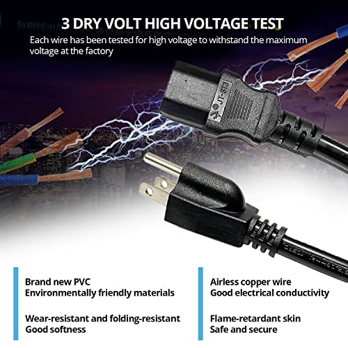Connector Standard: NEMA 5-15P 3P plug. PC Power Cord NEMA 5-15P works with North American outlets | IEC C13 connector works with most desktop computers, servers, monitors, PDUs, printers, and more | Replacement PC power supply cable/cord
