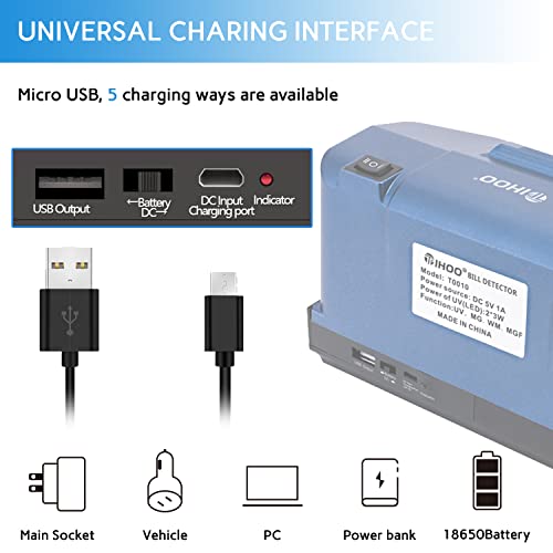 π²[WHAT YOU GET] TIHOO T0010 bill detector machine, 40 inch micro USB cable, 1A adaptor, Worry-free 12-month warranty, Friendly customer service