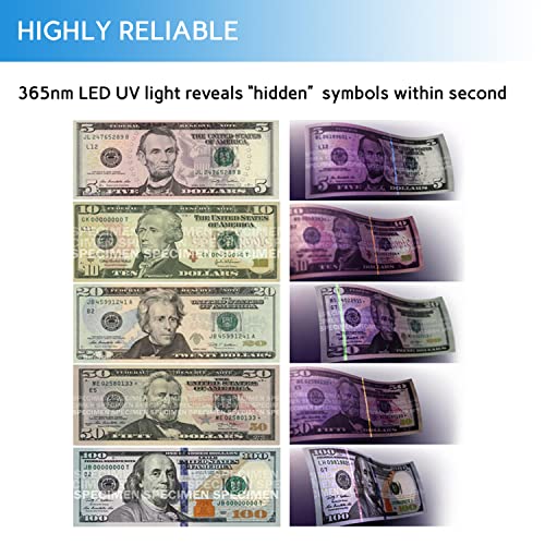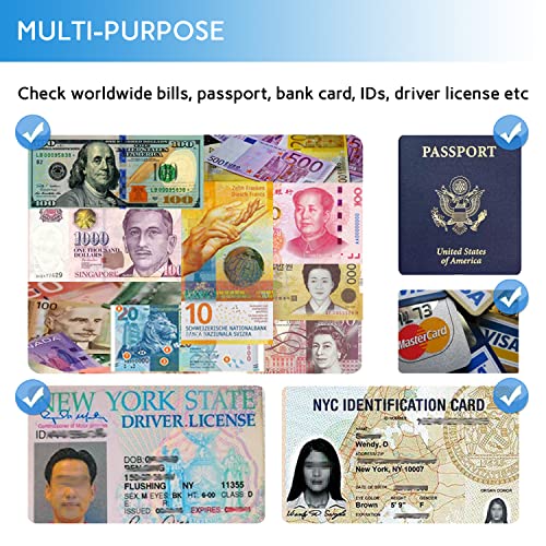 π²[HIGHLY RELIABLE] LED UV detector is able to verify worldwide currencies,such as USD EUR CAD RMB GBP INR, and also detect passports, ID cards, credit cards and other security documents